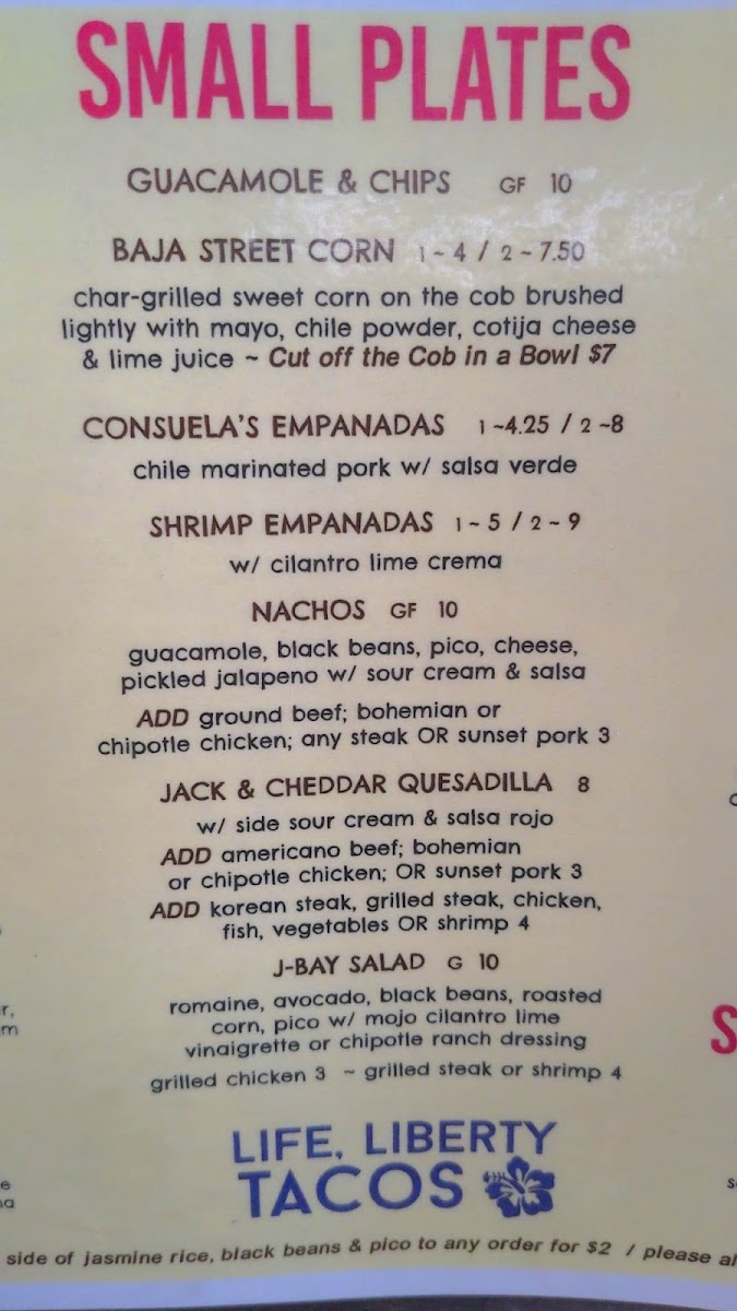Gluten free. Ancho chili ground angus beef, Cali coleslaw, jack and cheddar, salsa roja and chipotle crema. Served with homemade corn tortilla. Gluten Free.