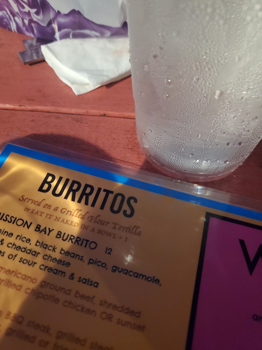 Jasmine rice, black beans, pico, jack and cheddar, guacamole, with sides of sour cream and salsa.